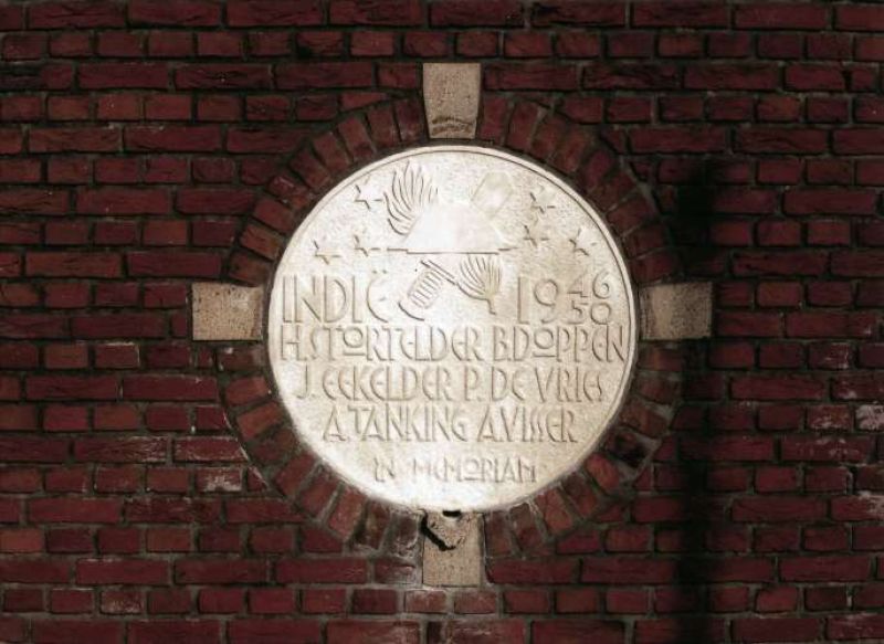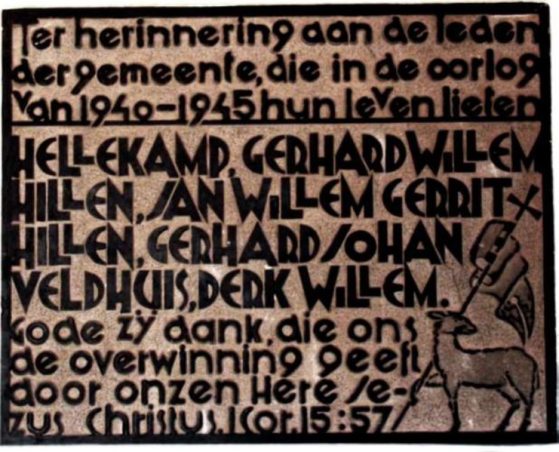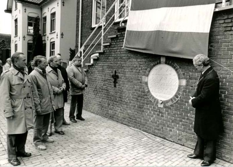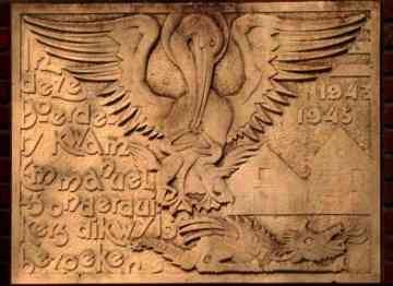 Bij de foto: Gedenkteken in de voorgevel van boerderij St.Willibrord. Het gedenkteken is geschonken uit dankbaarheid door de 43 onderduikers, die tijdens de 2e wereldoorlog hier (tijdelijk) een schuilplaats vonden.